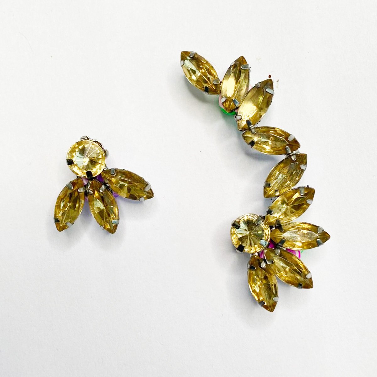 Par de aros “trepador” de un lado abarca todo el contorno de la oreja y para la otra un detalle de gemas de la misma gama de color.
