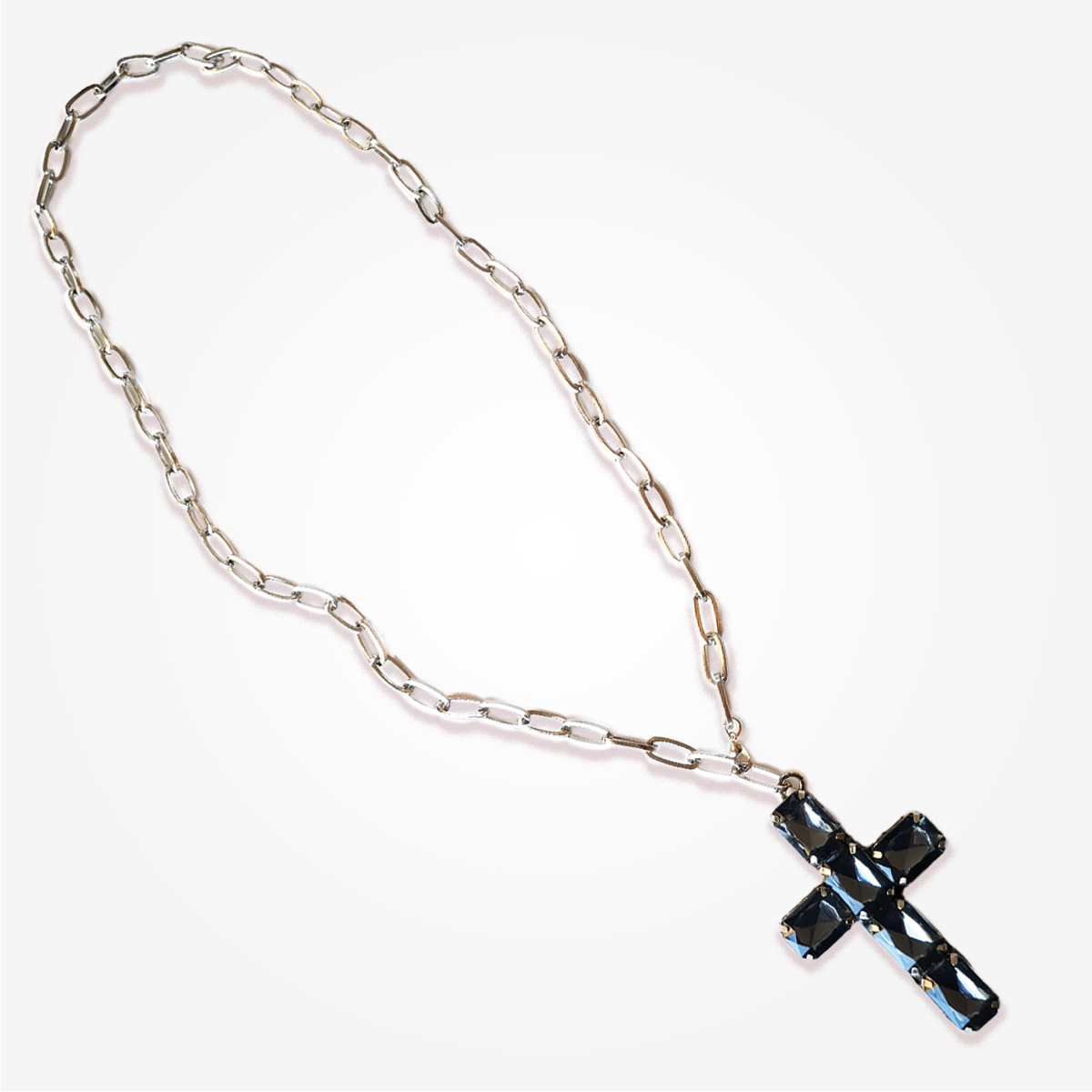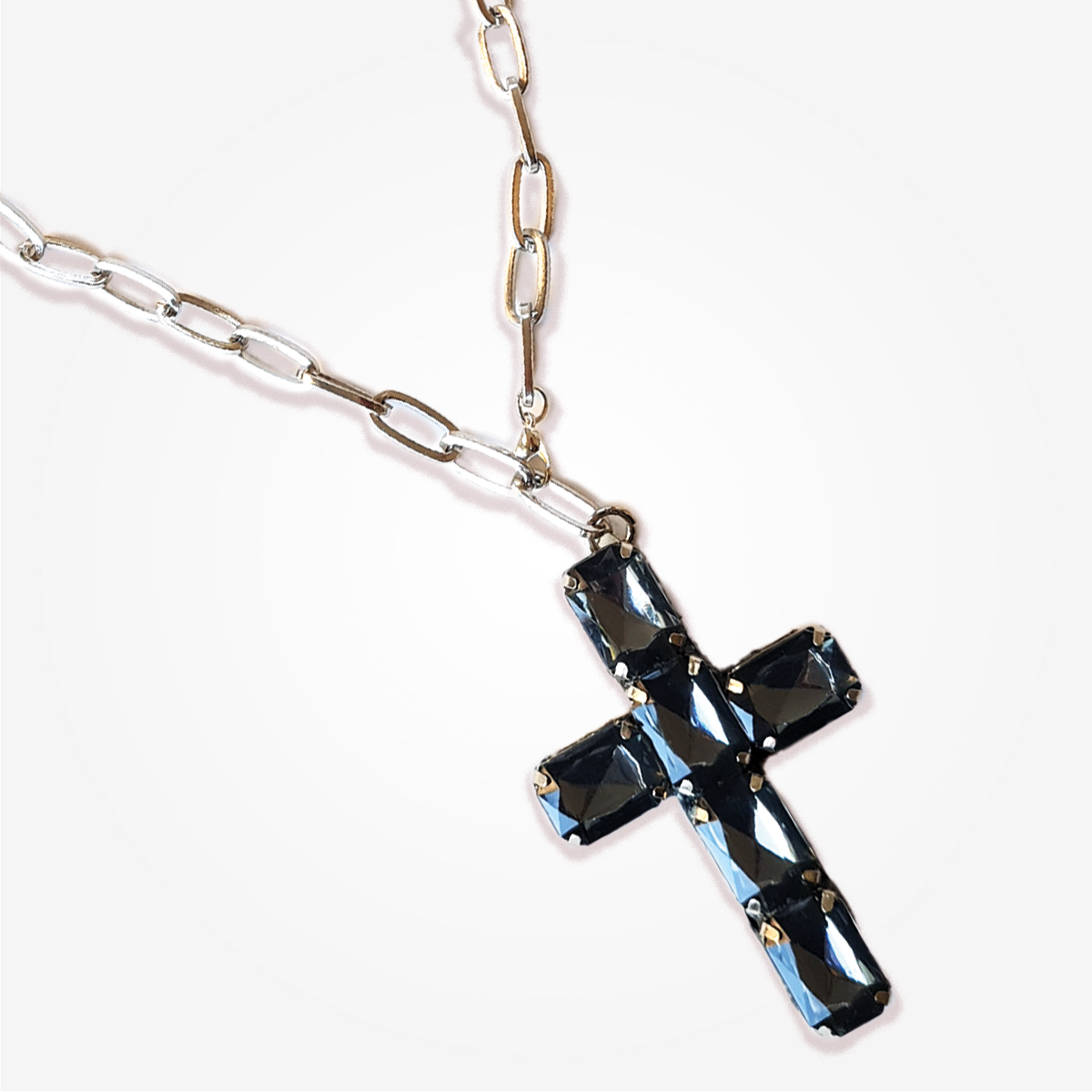 Choker, con cruz de gemas en color Azul. Con Lazo o cadena. Elegí tu favorito y usalo como más te guste!