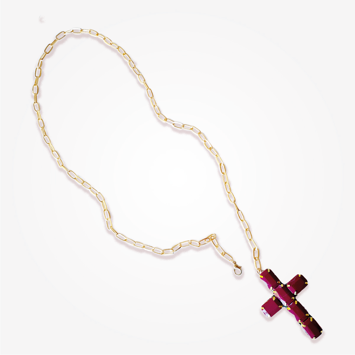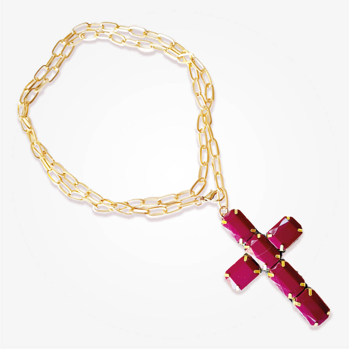 Choker, con lazo de gamuza o cadenas con cruz de gemas en bordo.