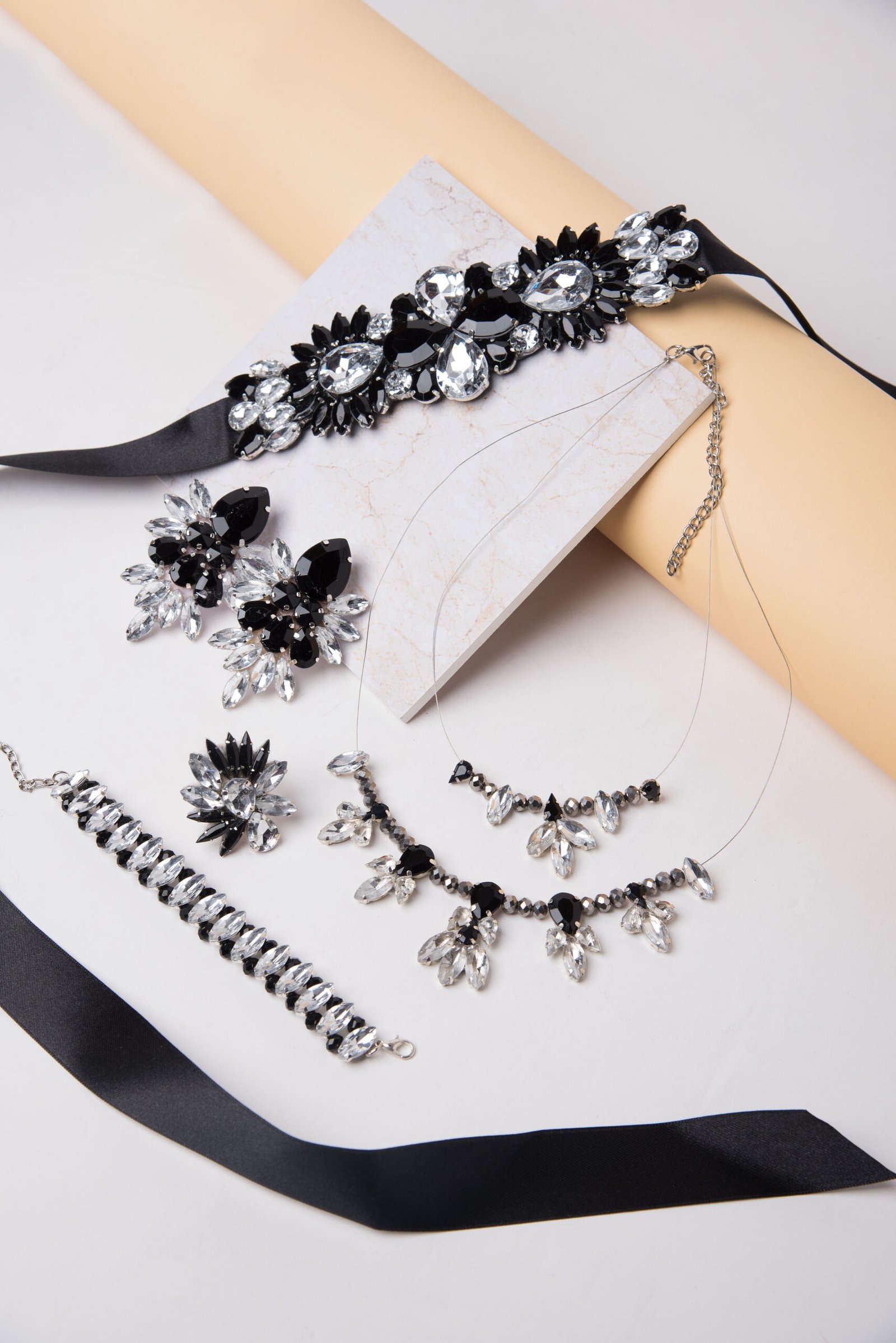 Variantes | C229 – Collar Carolina Negro y Dore, C229 – Collar Carolina Black, C229 – Collar Carolina Crema y Crystal, C229 – Collar Carolina Cristal y Negro, C229 – Collar Carolina Crystal |