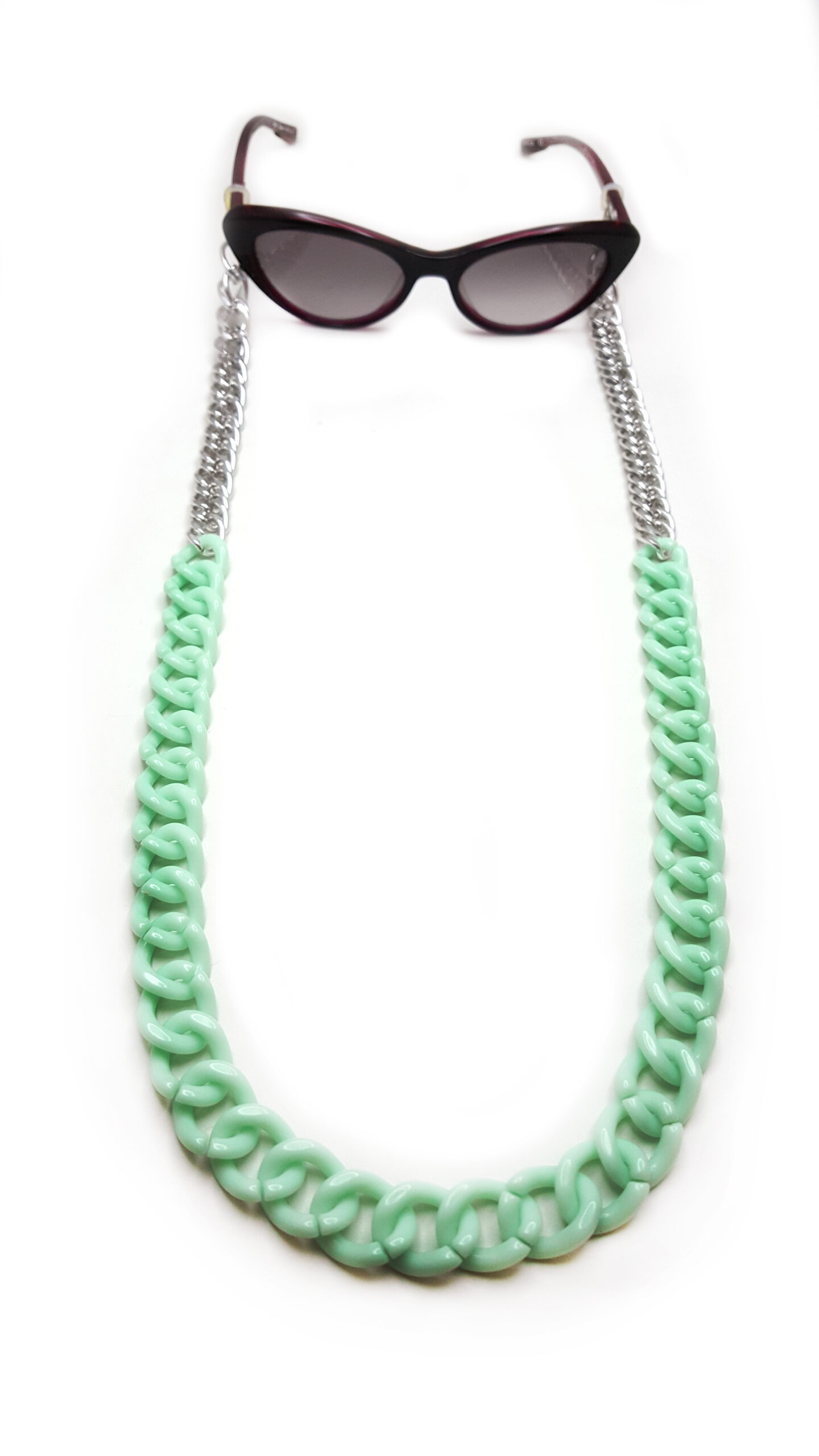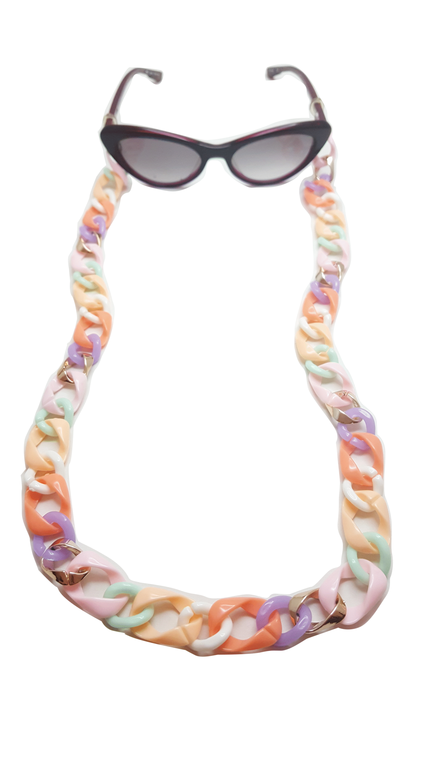 Cadena de acrílico para decorar tus lentes y tapaboca.