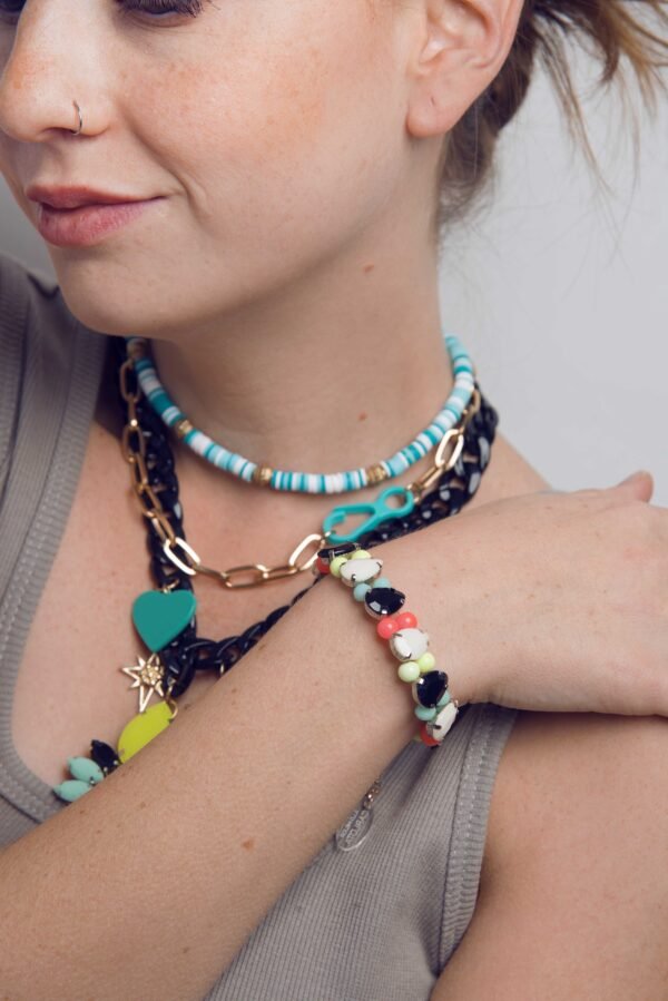 PULSERA DE GEMAS Y CRISTALES EN COLOR NEGRO + NEON.